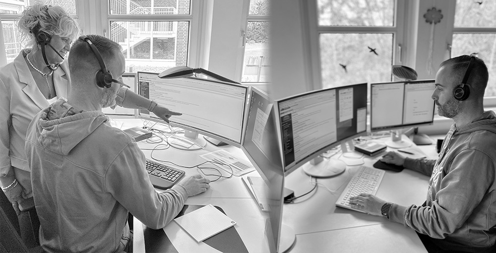 Die meisten unserer 26 Kolleginnen und Kollegen arbeiteten vor ihrer Zeit im Service-Desk in Amtsgerichten, Staatsanwaltschaften oder anderen Behörden in Niedersachsen. So auch Tim, der Erfahrungen seiner vorherigen Tätigkeit in der JVA Vechta zu uns mitbringen konnte. Nach einer individuell gestalteten Einarbeitung von erfahrenen Kolleginnen und Kollegen arbeiten die neuen Beraterinnen und Berater selbständig im Büro und im Homeoffice.